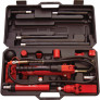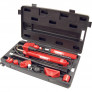 Used for clamping, pulling, bending, straightening, spreading and lifting operations. Snaps together. Heavy duty hand pump has automatic overload feature. Tough, blow moulded case. Strong flexible hose with spring guards at both ends. 10,000PSI hydraulic hand pump, 1/2 Tonne ram and spreader.